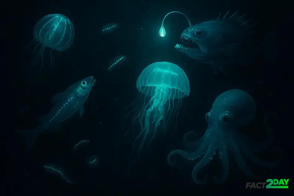 Many fascinating species use bioluminescence to survive in the pitch-dark environment of the deep ocean. Among the most well-known are the anglerfish, which uses a glowing lure on its head to attract prey close enough to catch. The light is produced by bacteria that live inside this lure, creating an eerie and effective fishing tool.