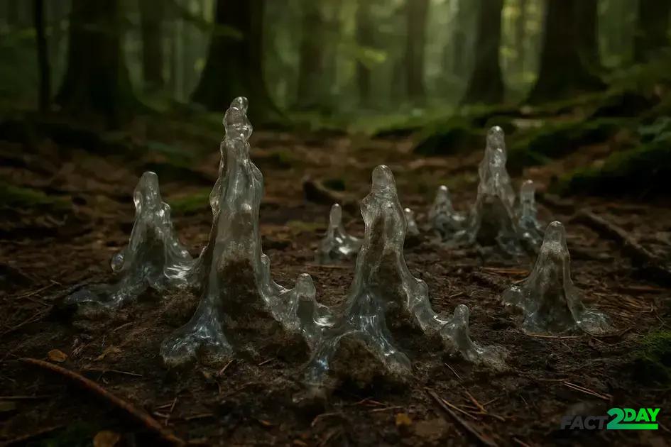 Lightning-induced glass forms when lightning strikes forest soil, generating extreme heat that fuses silica-rich minerals into unique glassy formations called fulgurites, offering valuable insights into geological and environmental processes.