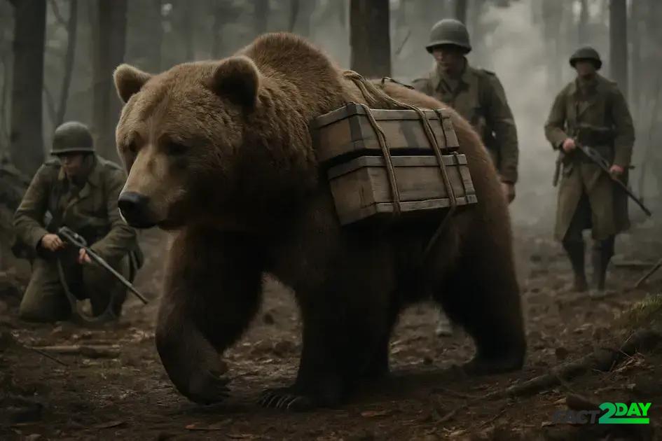 By assisting in logistics, the bear improved efficiency on the battlefield and contributed indirectly to battle success. Soldiers often tied packs securely to the bear’s back, making it a mobile supply carrier adapted to war conditions. This cooperation between humans and animal demonstrated extraordinary teamwork under extreme circumstances.